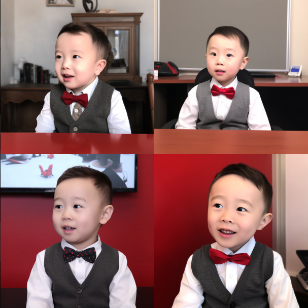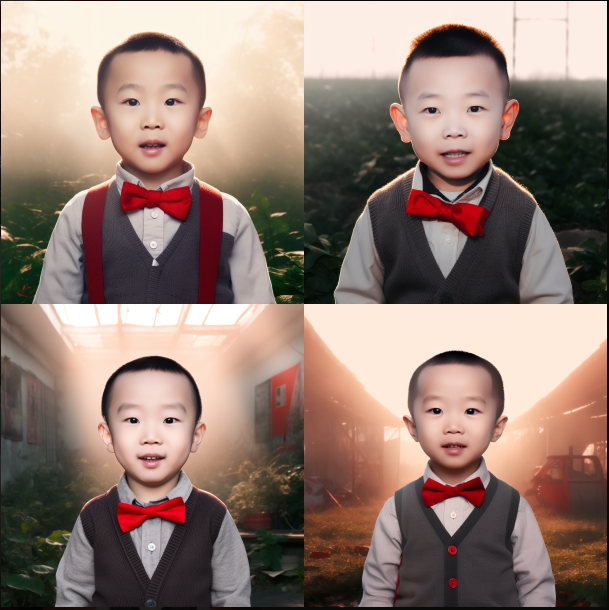 最终的成图是Prompt对于原图的描述,因此变成了孩子与Elon Musk的合体,并不是最初所期望的效果。或者简化Prompt,降低对于成图的干扰: