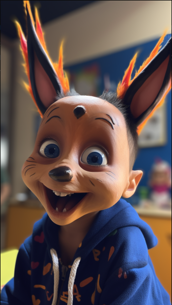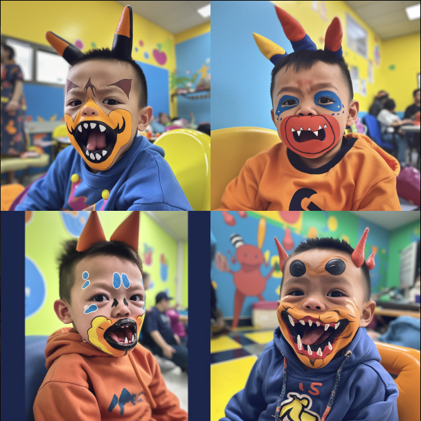 局部修改是MidJourney尚未推出的功能,结合原图使用Prompt,笔者尝试对照片进行局部修改,并以孩子万圣节的照片为例: