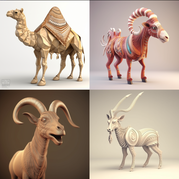 一些文化中的动物是人们想象的,想象中的动物其实并不存在,笔者尝试在不直接使用动物名称的前提下,使用人们对动物描述的原文或者类似文字的Prompt描述来生成动物,看是否能够符合印象中动物的样子,比如龙、美人鱼。