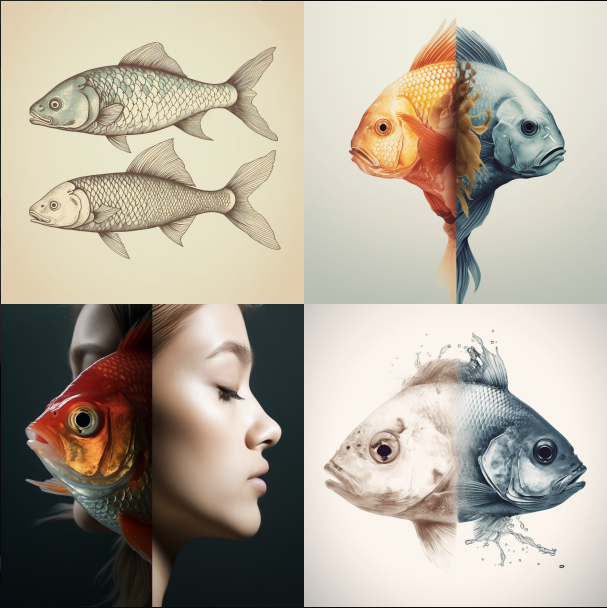 无论如何用朴素的语言描述美人鱼的样子,最终的成图都是女孩加鱼,而无法将人和鱼结合起来形成人鱼的样子,即便样子恐怖一些。