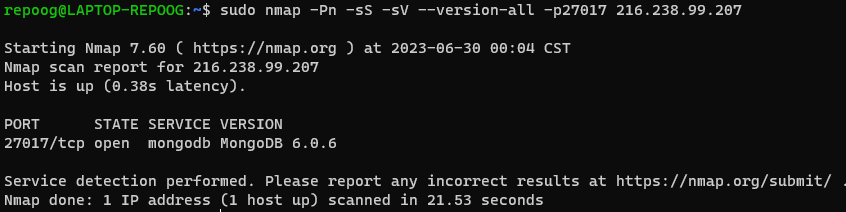 朋友反馈一个问题,说使用Nmap扫描MongoDB服务时对于6.0以上的版本默认无法识别到服务版本信息。